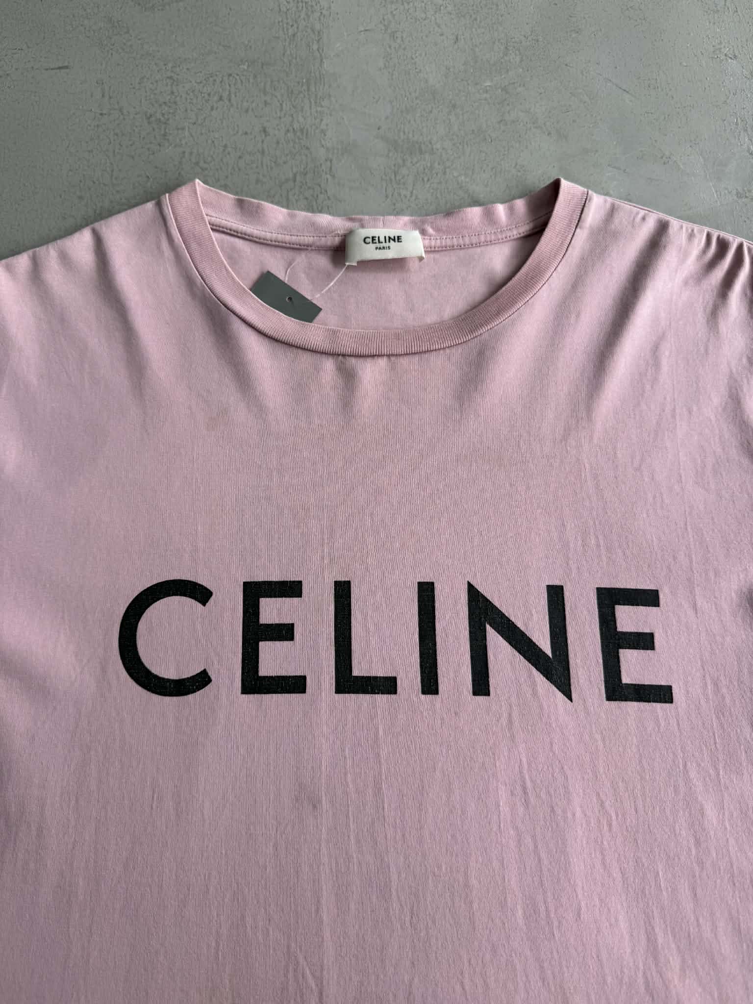 Celine Pink Scrip Logo Shirt