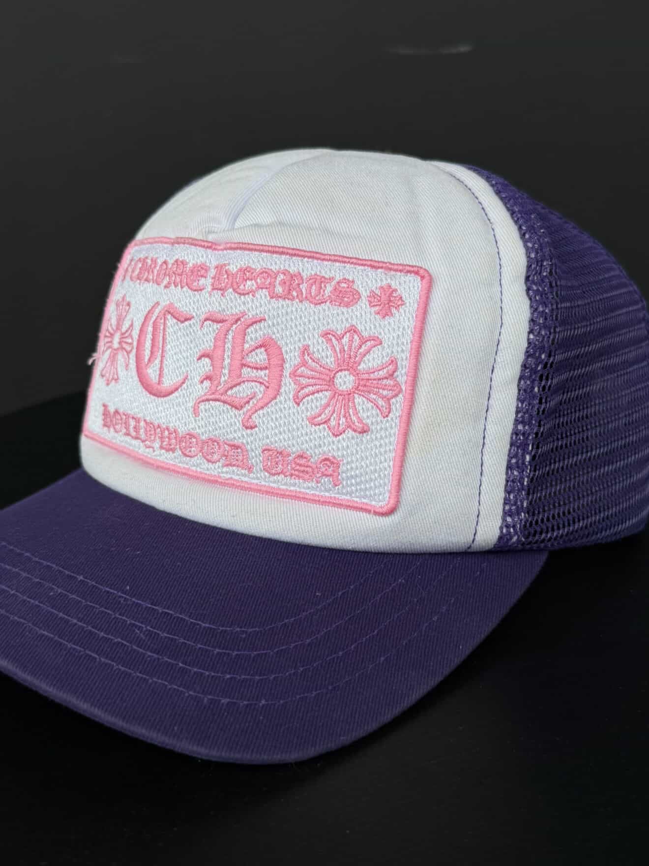 Chrome Hearts Hollywood Pink on Purple Trucker Hat